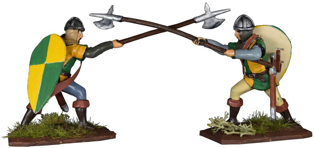 More heavy infantry. The second and third figures have Viking influence.